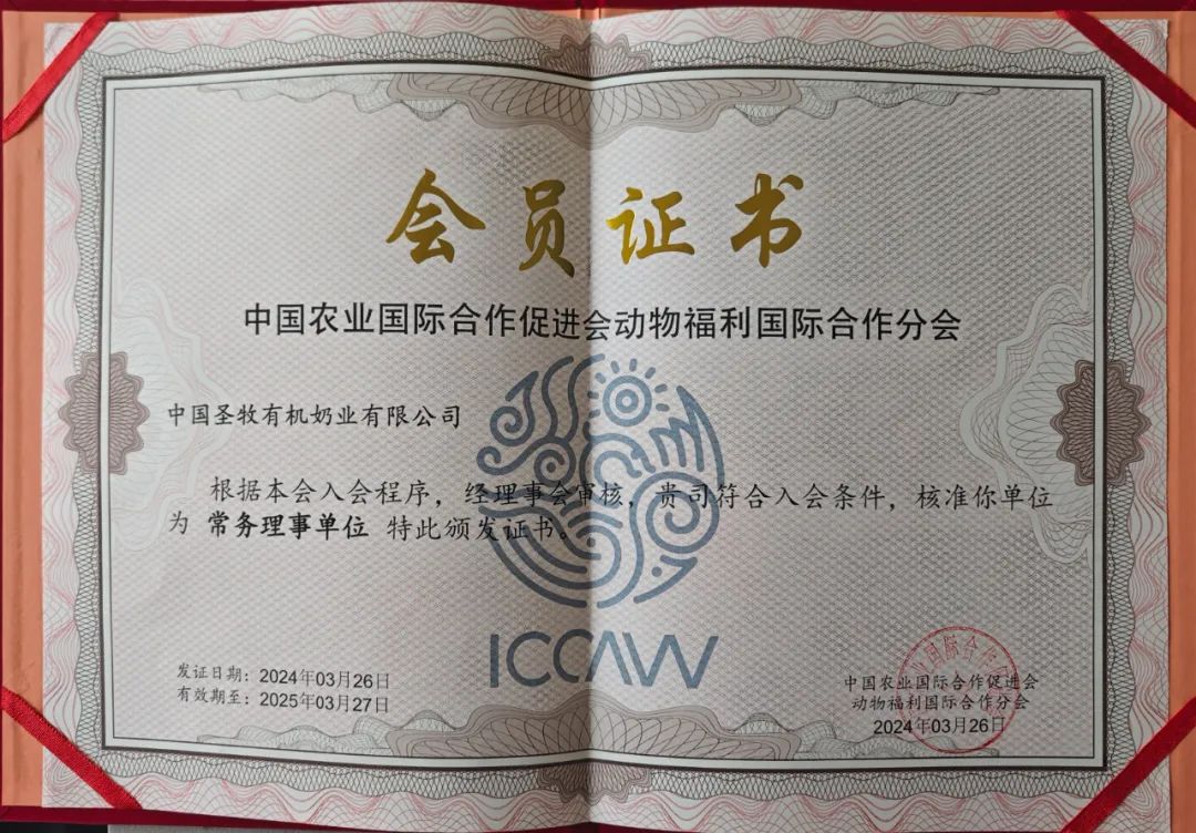 近日,中國圣牧加入中國農業(yè)國際合作促進(jìn)會(huì )動(dòng)物福利國際合作分會(huì )并成為常務(wù)理事單位。圣牧作為中國有機乳業(yè)的領(lǐng)軍企業(yè)一直倡導動(dòng)物福利,確保整個(gè)生產(chǎn)流程符合動(dòng)物福利標準。